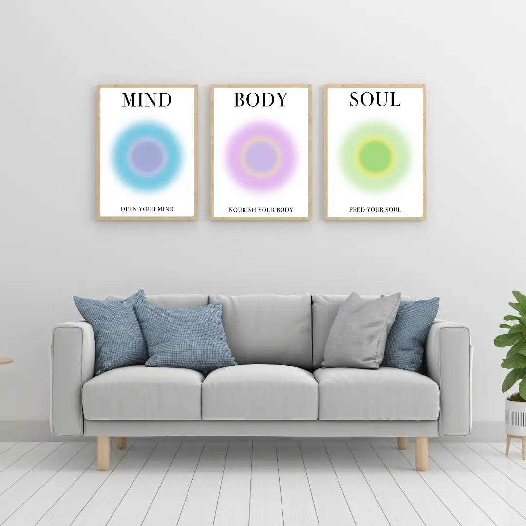 Elevate your space with our transformative Mind Body Soul Aura Poster Set.